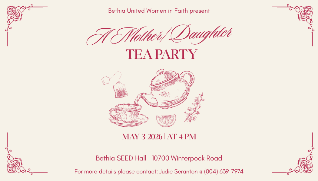 (UMW) at Bethia exists as a local unit but is connected to the James River District, the Virginia conference, and the national policy-making body for UMW. Our local unit at Bethia is comprised of two circles, The Marian Berry Circle and the Busy Ladies Circle.